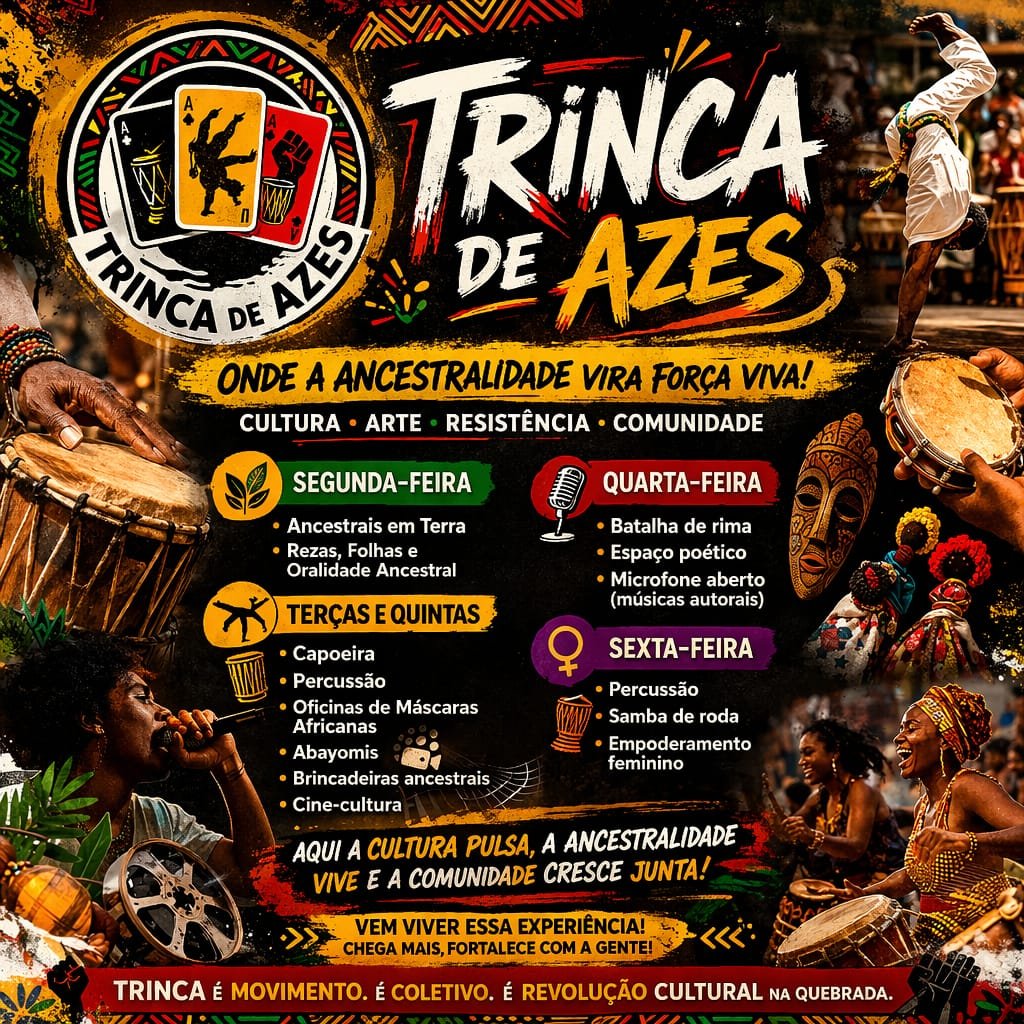 Em um cenário onde a escassez de recursos costuma ditar as regras, um movimento cultural surge como prova de que a identidade é a ferramenta mais potente de transformação social. O coletivo Trinca de Azes reafirma seu papel como território de resistência, abrindo as portas para uma programação que une crianças, jovens e adultos em torno da valorização da herança africana e do protagonismo periférico.
